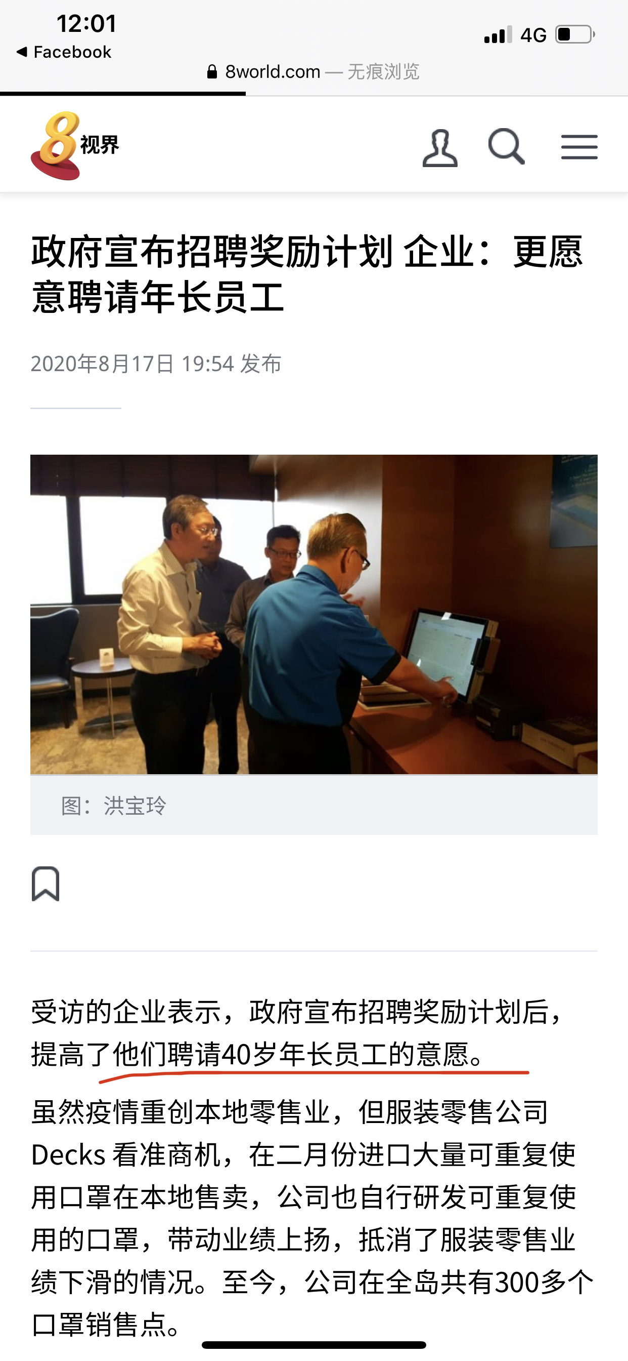 凡人 • • 10815 次浏览https://www.8world.com/news/singapore/article/companies-more-willing-to-hire-those-above-40-after-gov-announces-subsidies-1222941