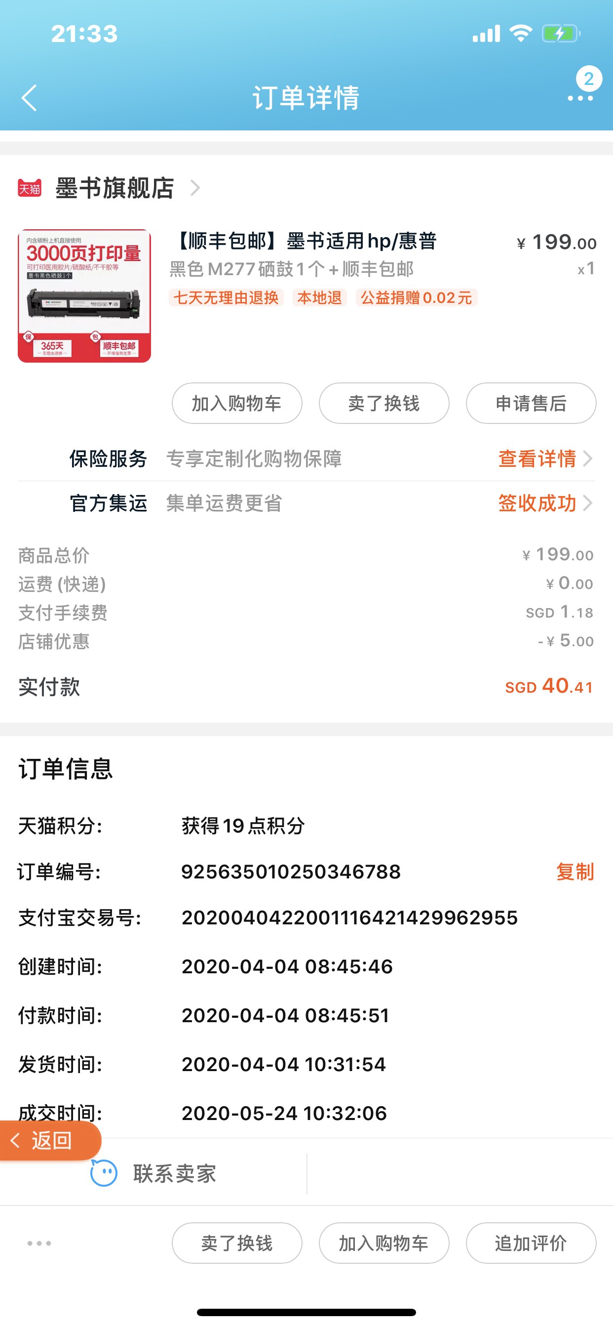 开始了 • • 10813 次浏览CB前急急忙忙买了个打印机,现在墨盒用完了,发现墨盒的价钱几乎可以再买个新的打印机。而且这个型号在新加坡和淘宝都没找到便宜的替代的墨盒。
