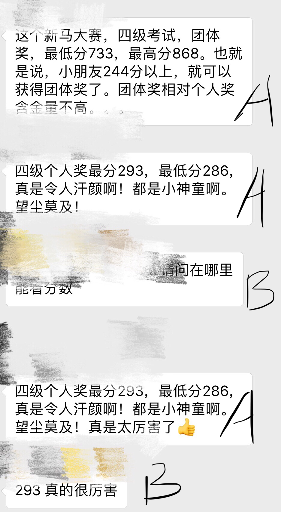 2. 谁家谁家娃娃去参加什么汉语言考试,什么团体奖,个人奖。。。(一些妈妈垂足顿胸后悔不知道有这个比赛,就赶紧追捧,哎哟哎哟好厉害哦,下次参加比赛喊我们一起啊;一些不知道是吃不到葡萄,还是淡定心态,就讲哎哟,这些山寨考试屁用都没有,一堆马来西亚学生拿奖,中国学生随便去都过了,完全没有含金量)