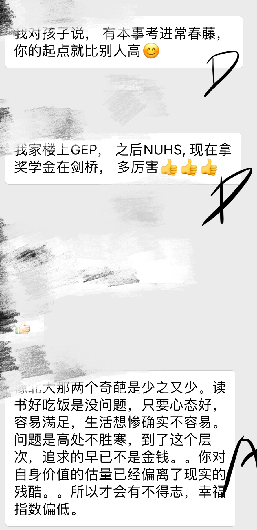 【其它话题】面对教育群里面的妈妈们的狗血鸡血,请问你能否做到淡定以对?说实话,加入这个小学二年级群,本来是因为对新加坡小学教育不了解,所以觉得吧,加入群,听听其他妈妈聊天,分享下知识感受,应该是很好的。非常菜鸟的心态是吧,我以为群里面一般就是讨论下比如上学放学时间/寒假暑假时间/别人家怎么带娃学习玩乐工作几头齐头并进~偶尔吐吐槽之类的话题。。。