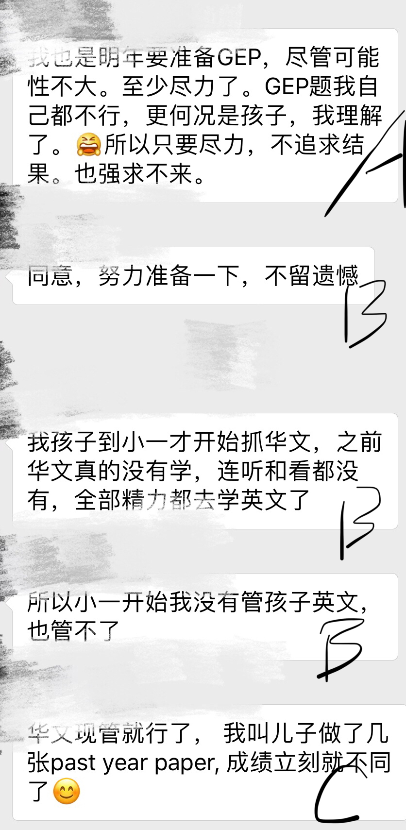 先重点介绍下前提:(群里面一般是新加坡小学二年级学生家长)