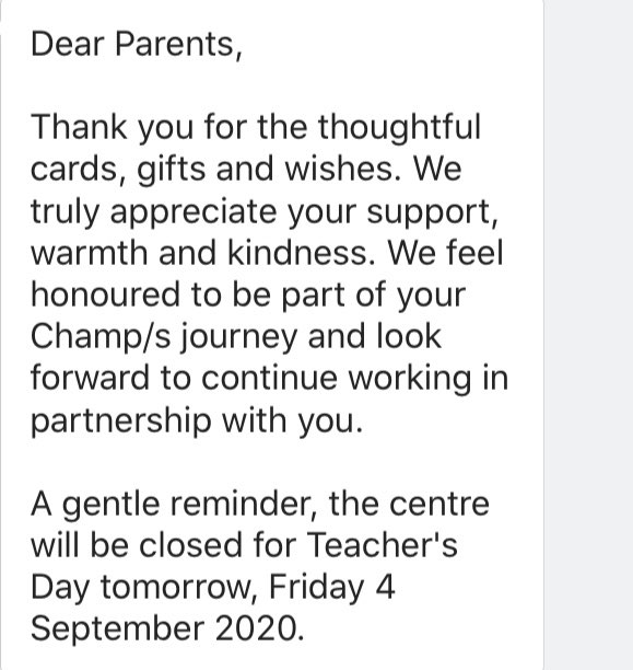 Mindchamps 教师节家长要准备什么吗
