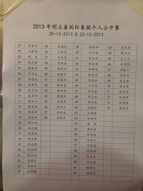 2013吉中明立善阁杯72人中新两人进前16排名。