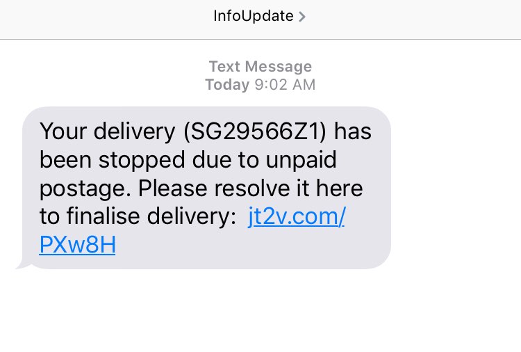 其实本人之前网购的东东都收到了,所以很确定没有其它delivery估计这个又是钓鱼的。网上搜了搜,貌似点链接进去后会要求支付邮费,金额一般不大,还要求输入很多个人信息大家注意些吧