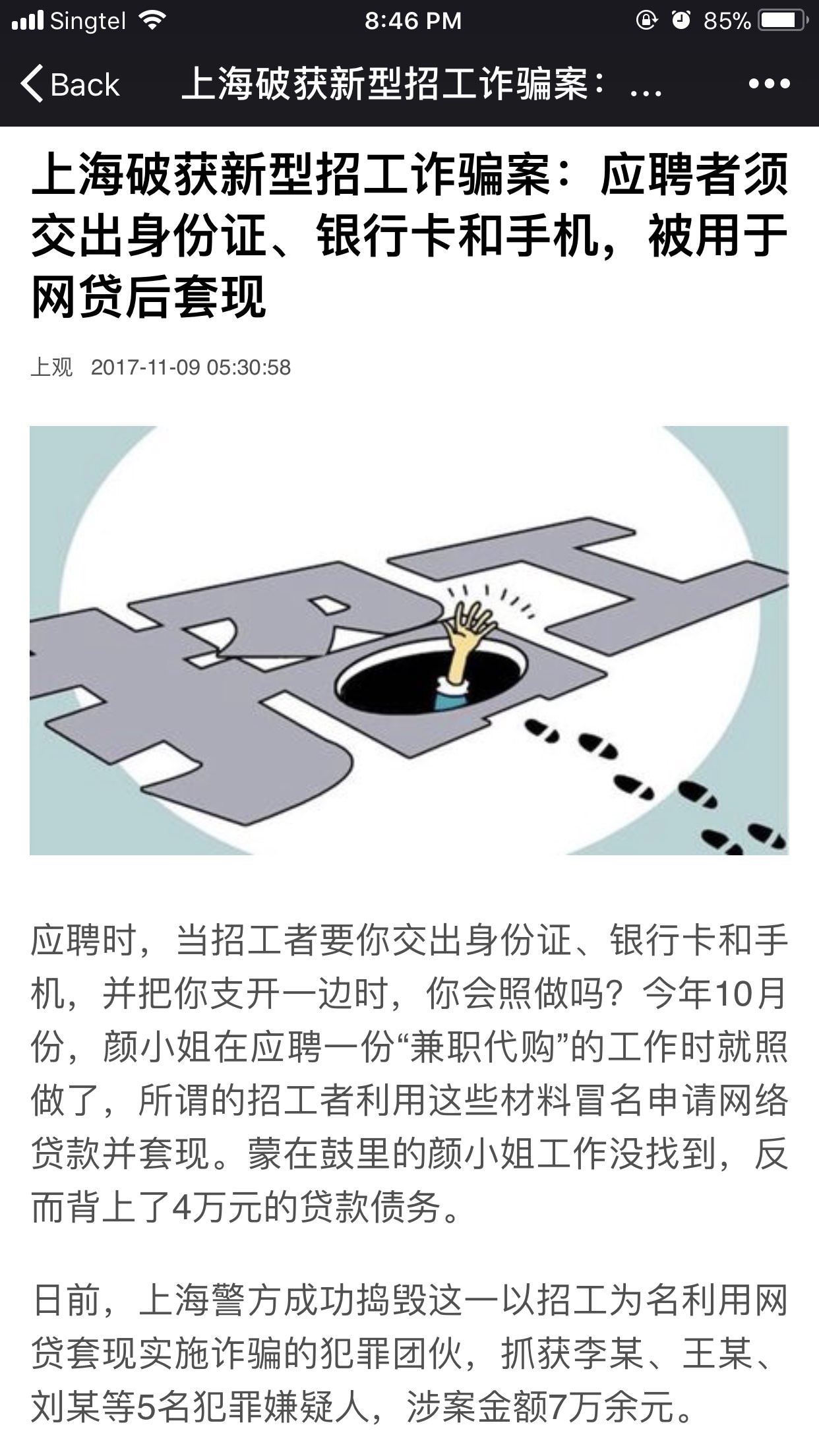国内找工作的时候很多要看身份证的只是想要提醒大家,新加坡这边的某些商店行为很奇怪。大家留一个心眼。我已经遇到类似情况第三次了。