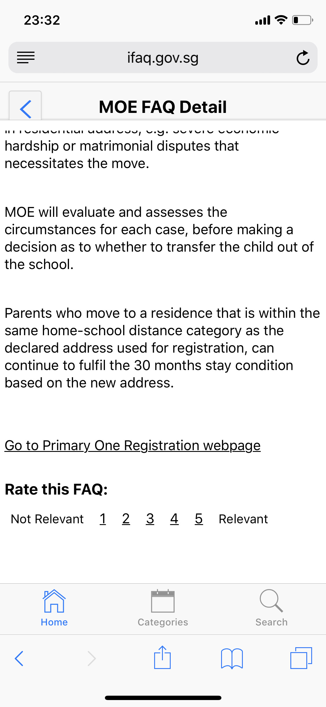 MOE 网站写的是要在注册用的地址住30个月。但是他的宗旨也是为了孩子上学方便。如果我的新房也在一公里内,是不是可以接受?