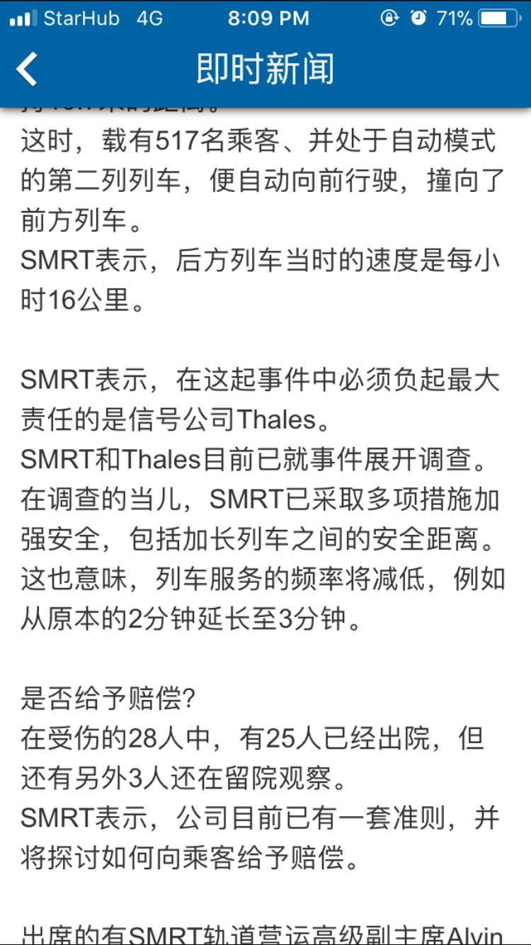 SMRT 表示在这起事件中必须负起最大责任的是信号公司Thales