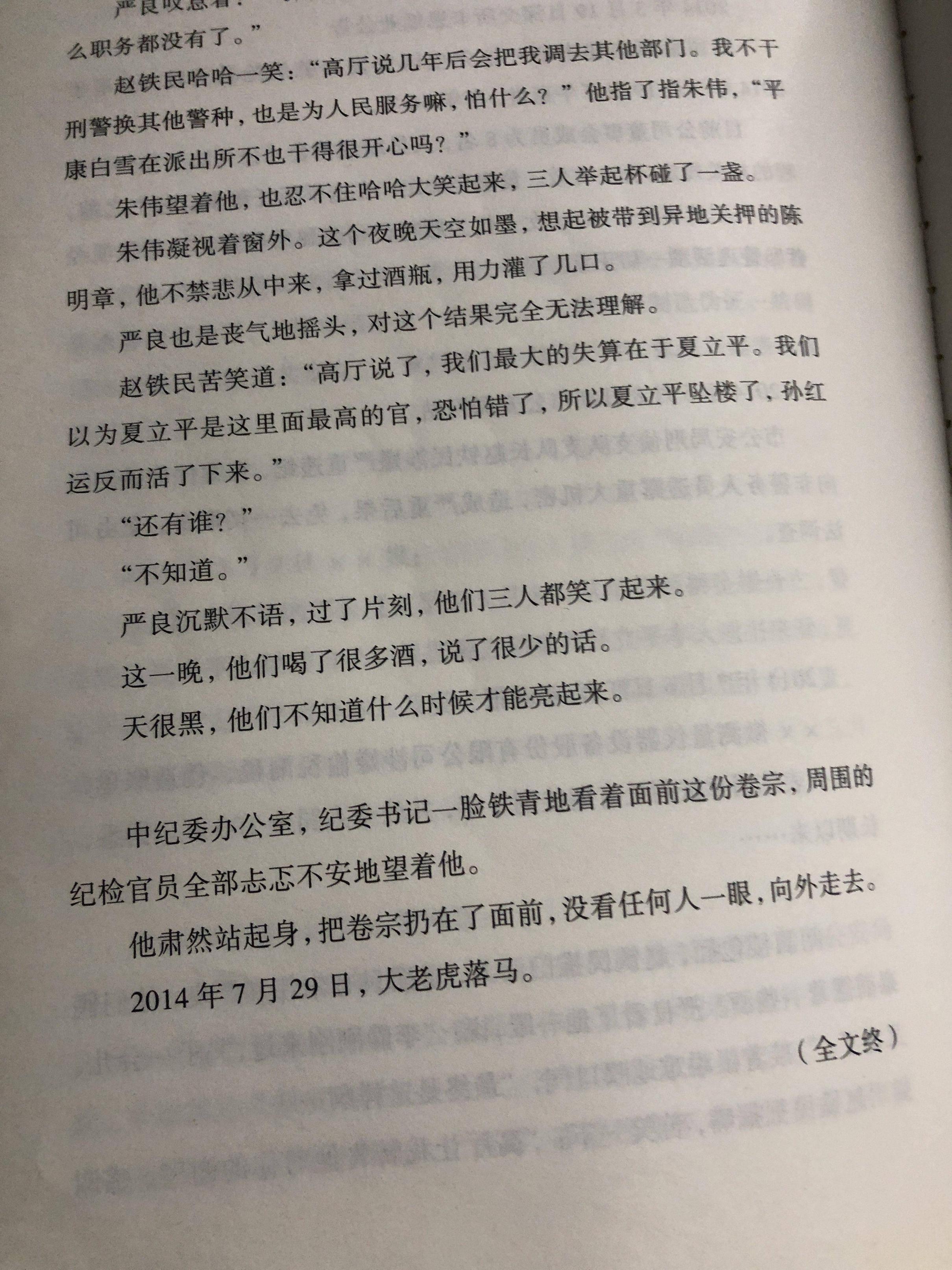 小说里有写最后那几个犯事儿的领导都不正常死亡了 直到有一年某大老虎下台 才有了光亮 -