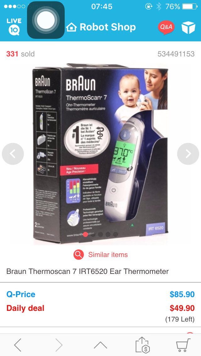 应该是假的我在carousell上买了个50多块的,那个seller也在q10上卖,拿到手明显觉得不是正品,去guardian买了本地行货,拿来一对比质量差别太明显了。虽然量体温两个误差不大,但是还是弃用了,毕竟是给孩子量体温的,不知道哪天就不准了