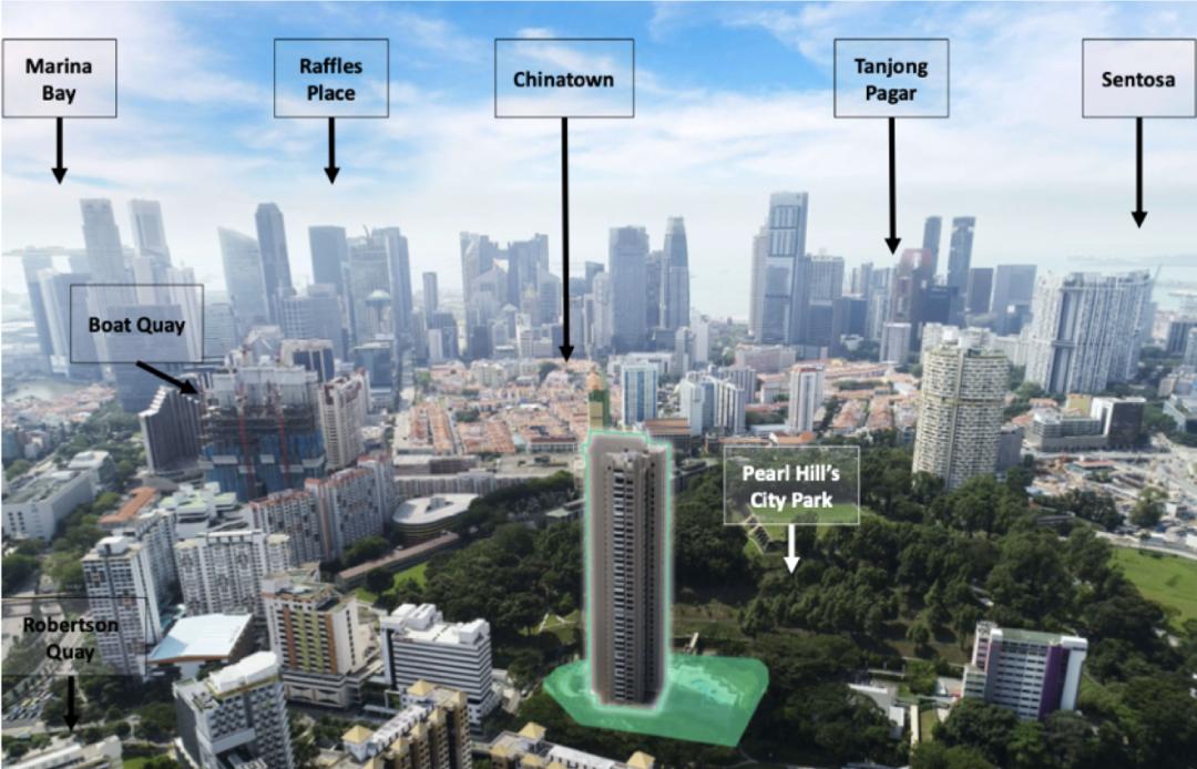 新加坡的CBD也有一个公园,叫做「珍珠山城市公园 Pearl's Hill City Park」,当然咖位没有前两者那么大,但也是中央区的绿肺之一。今天要介绍的楼盘,就在珍珠山公园上,名为「鼎瑞苑 The Landmark」,依山傍水,风水宝地。