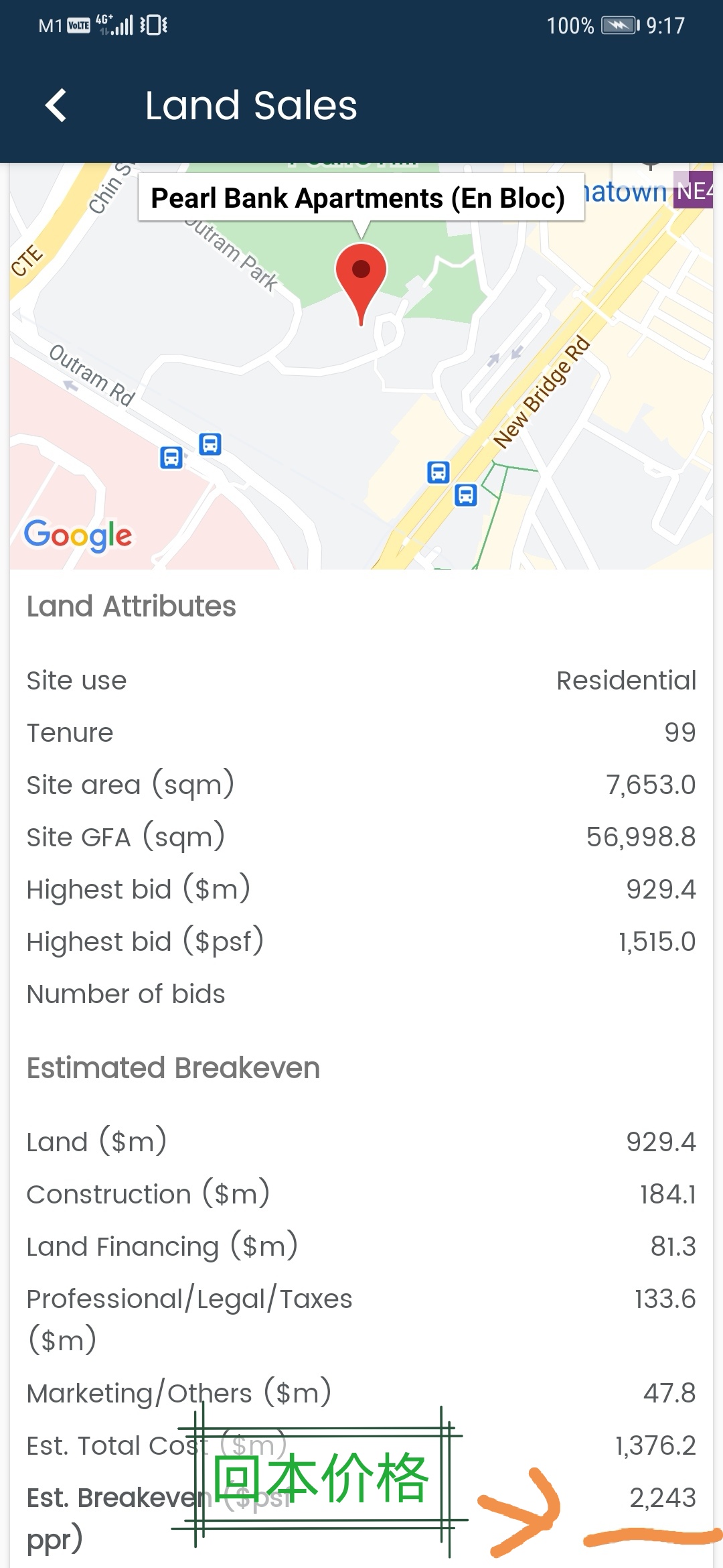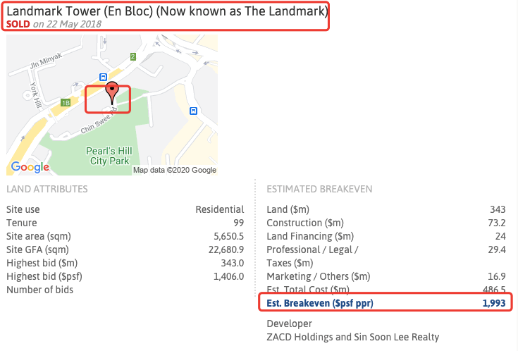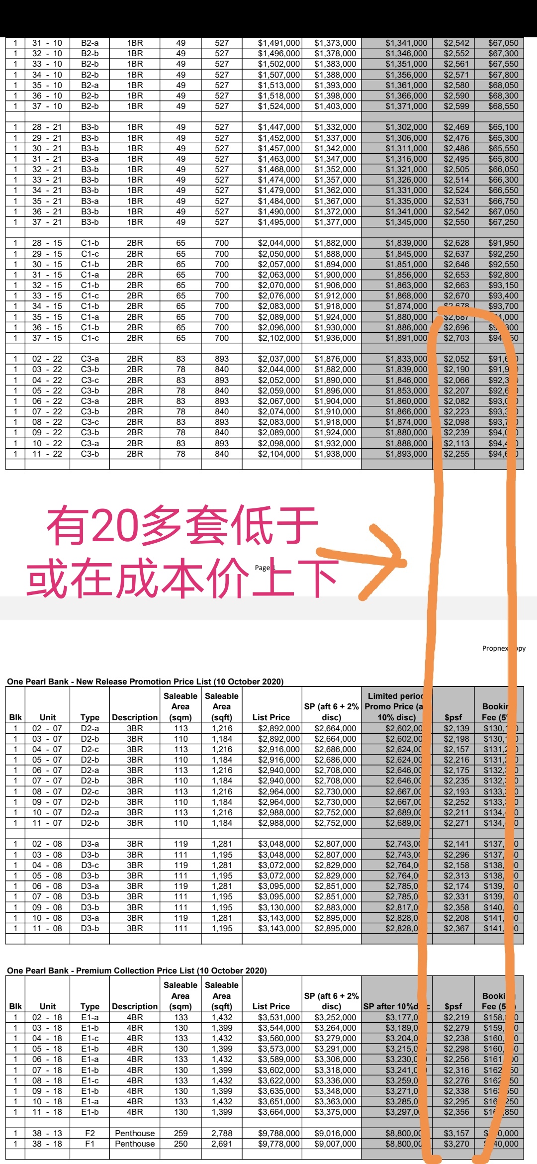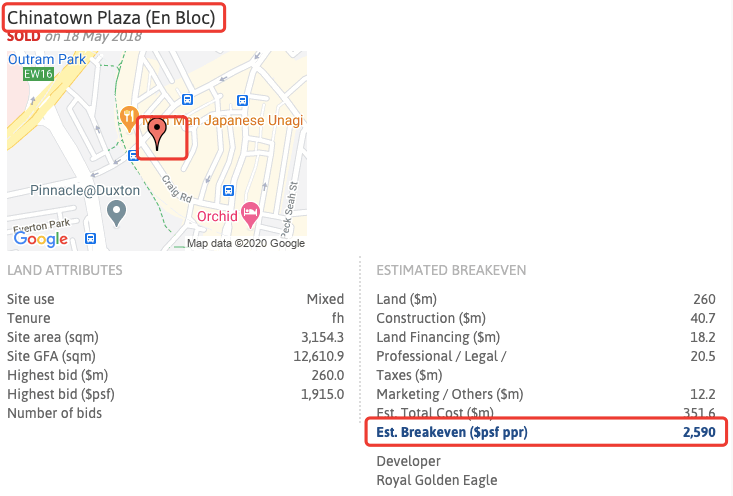 举个栗子,Chinatown Plaza,距离「欧南园」地铁站和「鼎瑞苑」差不多,但是回本价格却差了600每平尺(参考下图),即便算上99和永久地契20%的价差,「鼎瑞苑」还是比后者便宜300每平尺,这部分价差就是未来潜在利润。