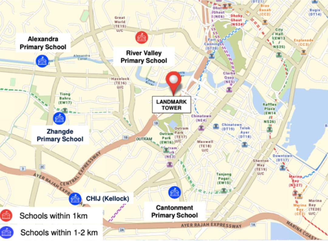 除了新加坡河,「鼎瑞苑」与周边其他楼盘不同的是,它在名校「立化小学 RIver Valley Primary」一公里范围内,是名校学区房。