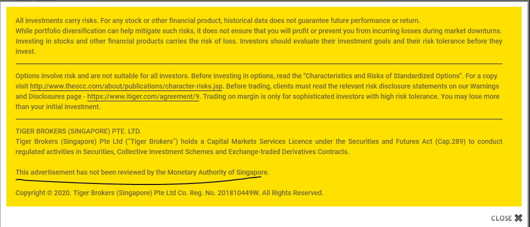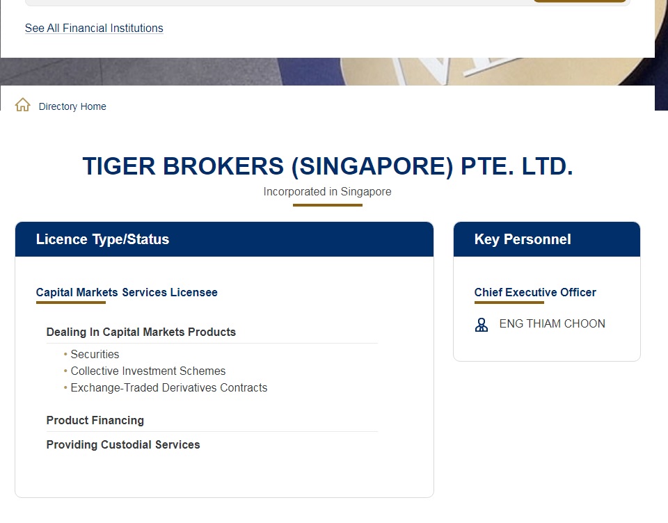 我没有看出什么端倪第一张图,大部分的financial institutors根据自身经营的业务大同小异。tiger brokers在新加坡成立,所以受新加坡的法律和MAS监管。