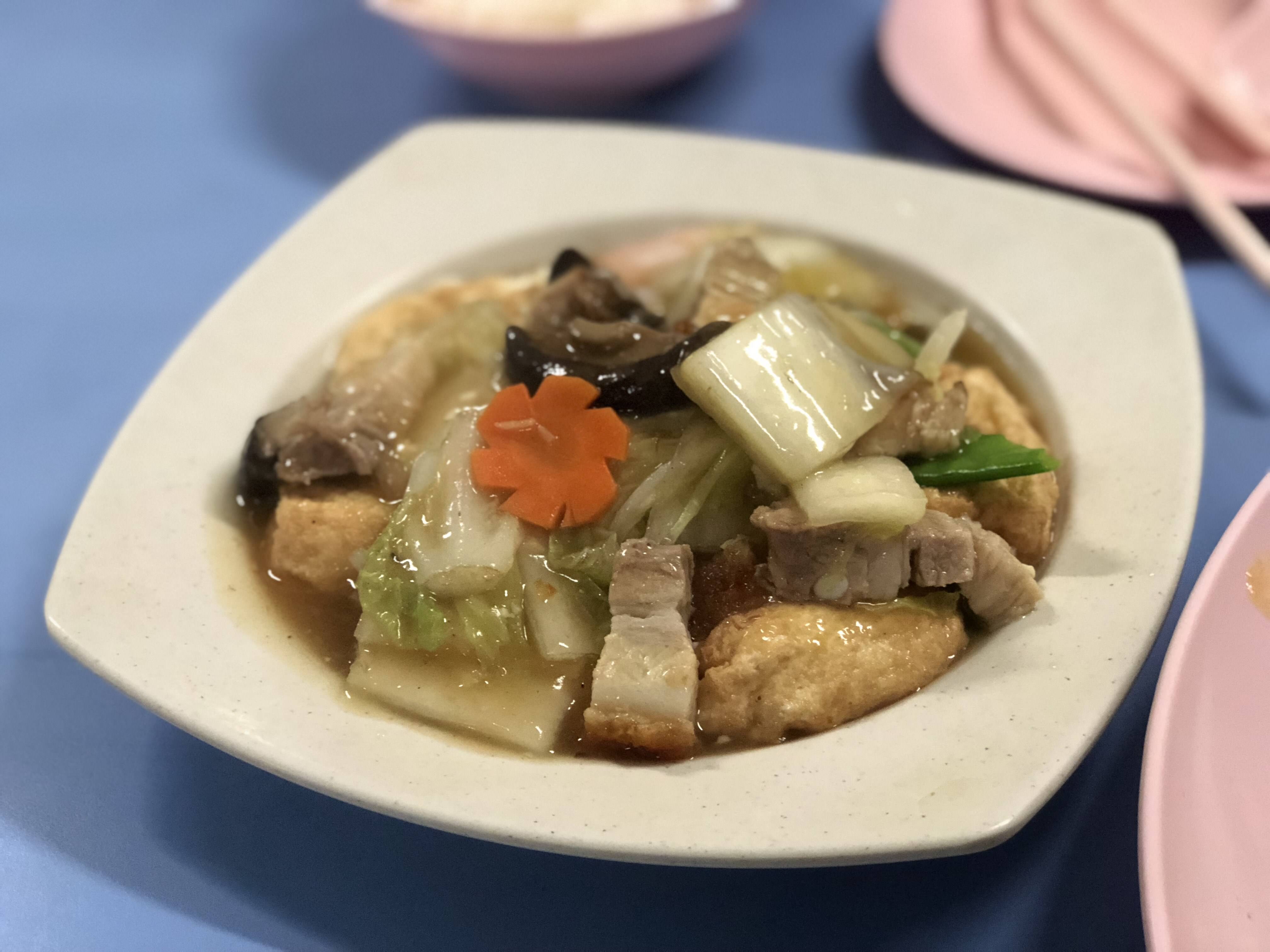 那里有好多间都是卖蒸松鱼头的,都不错,不过选酱蒸一般偏咸。还有道菜”炒鱼杂“,鱼肠鱼肝放一起炒,很特别。